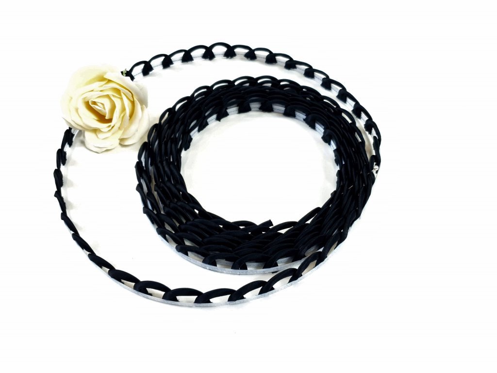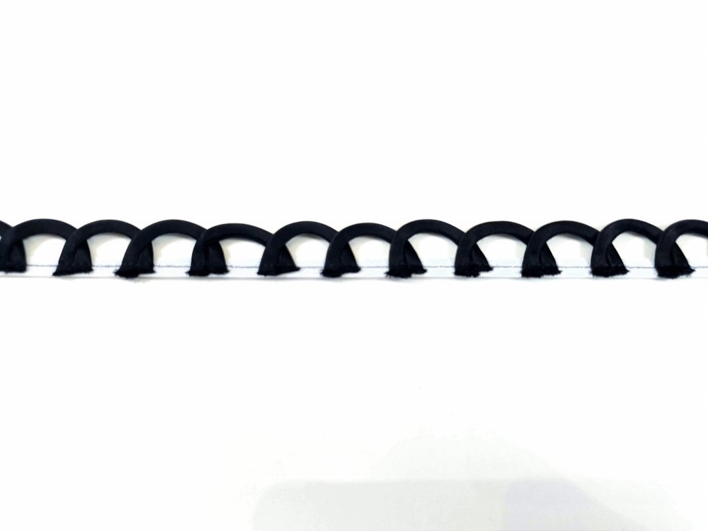 Saténové poutka na korzet v černé barvě. Poutka jsou našitá na pevné kostici, která se dá prošít. Délka jednotlivých ok jsou 3 cm, výška 2 cm.