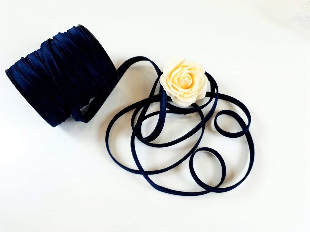 Šněrovací šňůra ke korzetu v tmavě modré barvě.