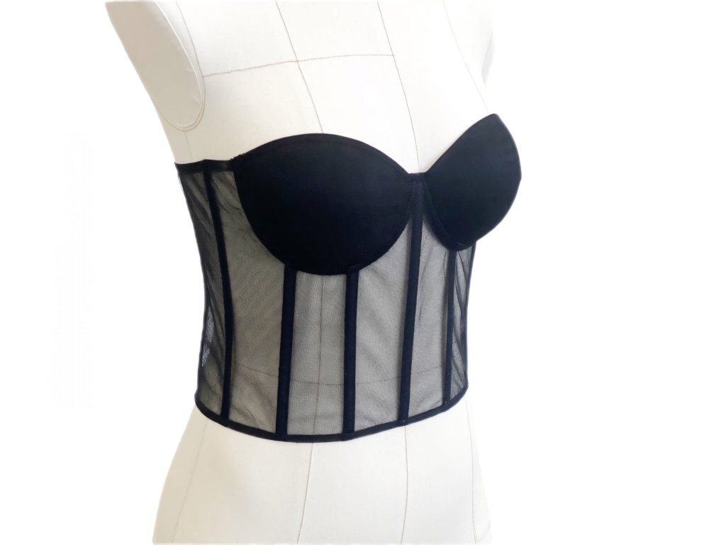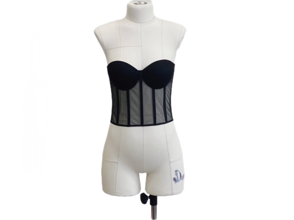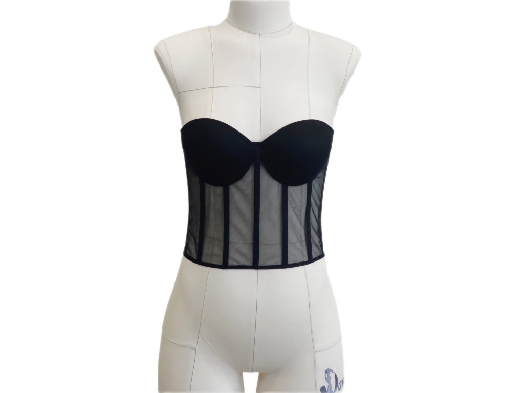 Lehký, průsvitný korzet v černé barvě ze speciálního pružného tylu. Kombinuje eleganci černého tylu s moderní siluetou. Ideální jako základ k dotvoření podle vašeho stylu.