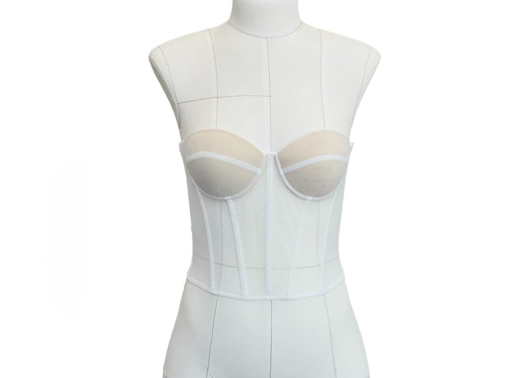 Průhledný tylový korzet barvy ivory. Korzet je ušitý ze speciálního pružného tylu. Tento korzet je ideální základ pro svatební a společenské šaty.