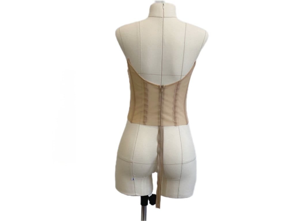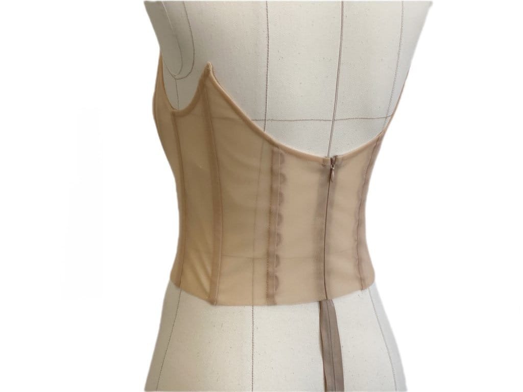 Tylový korzet v tělové barvě. Korzet je ušitý ze speciálního pružného tylu, je vyztužený kosticemi, které vypomáhají, ke správnému držení těla a vytvarovaní ženské siluety. Zadní díl mÁ vnitřní šněrovaní, to zajišťuje postupné stahování a vytvoření postavy, po které jste vždy toužili! Pro estetický vzhled korzetu na zadním díle jsme přidaly zapínání na skrytý zip. Předchystaný korzet, který Vám ušetří spoustu času, dokonale se hodí pro společenské šaty, pro luxusnější vzhled doporučujeme ozdobit krajkou nebo krajkovou aplikací či kamínky...
