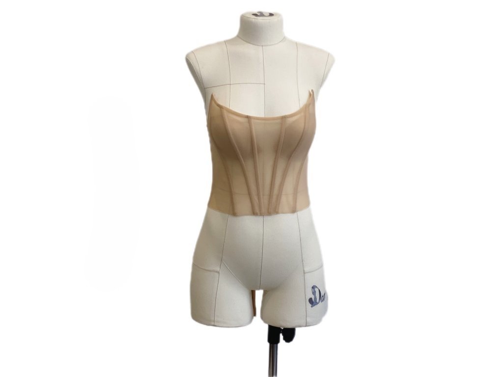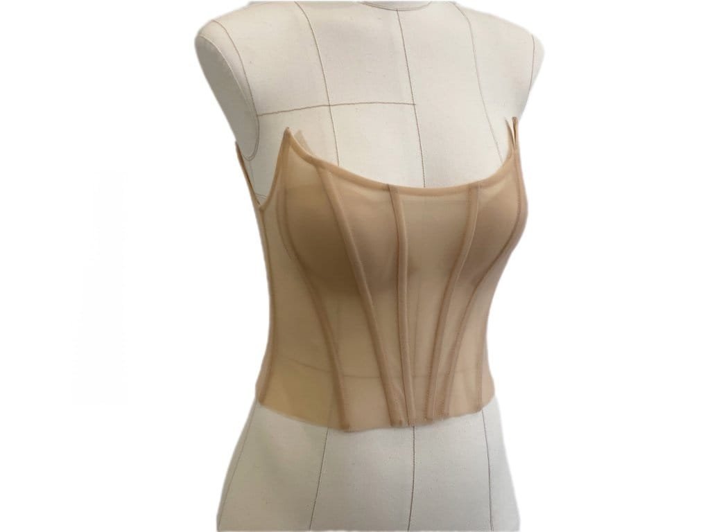 Lehký, průsvitný korzet v tělové barvě ze speciálního pružného tylu. Kombinuje eleganci netradičního střihu s moderní siluetou. Ideální jako základ k dotvoření podle vašeho stylu.
